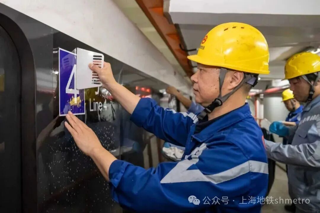 在宜山路站至宝山路站之间,3、4号线共有9座共线车站,部分列车为两线共享,并采用黄色和紫色的线路标识色带,但这同时也带来了辨识上的困扰。为此,上海地铁在江杨北路、石龙路、蒲汇塘三大基地同步开展更新升级改造,首批完成标识升级的03A02、04A02型列车已投入运营,以更清晰、醒目的数字标识方便乘客识别。