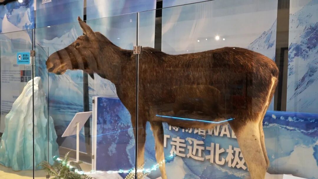 其中,世界上最大的鹿科动物——驼鹿,凭借修长的四肢和宽大的鹿掌,吸引了不少学生的目光。“这些都是北极非常具有代表性的动物,我们在日常生活中很难见到。这次展览让我有机会走近北极,了解更多生物知识的同时,激发了我的好奇心。”高一学生姚子钦说。
