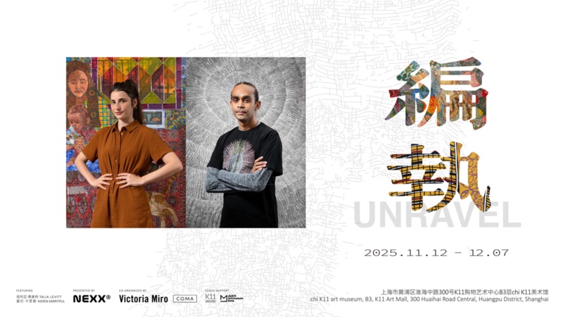 展览《编执》“Unravel” 于11月12日至12月7日呈现。本次展览汇集了塔利亚 莱维特与基伦:卡里普两位艺术家的作品。他们凭借纺织品中的视觉,折射出记忆、身份认同与自身经验中的认知。展览展示的不仅是作品本身,更是艺术家的内在观景—他们承袭的坚持,交织在画布与意识之间,让观者在细腻的视觉体验里体会传统技艺与当代精神的张力。