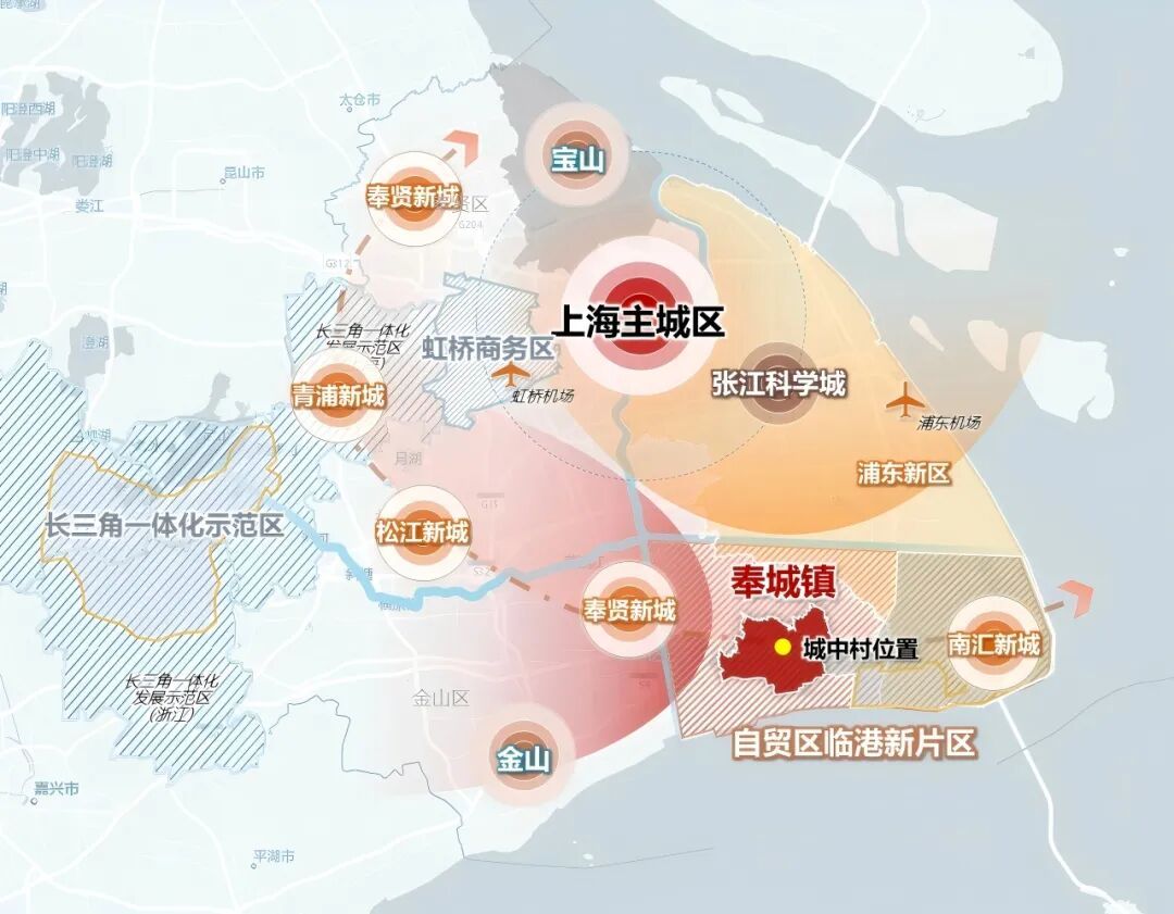 奉城地处自贸区临港新片区、奉贤新城、浦东-张江三大发展极交汇处,凭借其卓越的交通网络,成为承接高能级区域资源溢出的"第一站"。通过G1503高速,30分钟直达浦东国际机场;借助贯通后的S3高速,同样30分钟速达张江科学城;经由港漕公路,仅需15分钟即可畅达临港新片区主城区。未来,随着沪杭高铁、南枫线、27号线等多条轨道交通的规划落地,奉城的交通能级将实现新一轮飞跃,进一步巩固其作为南上海战略枢纽的重要地位。