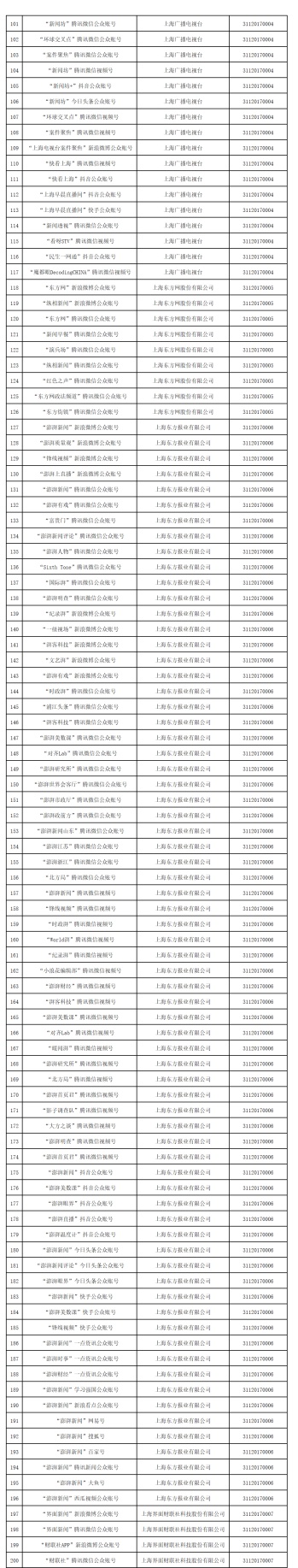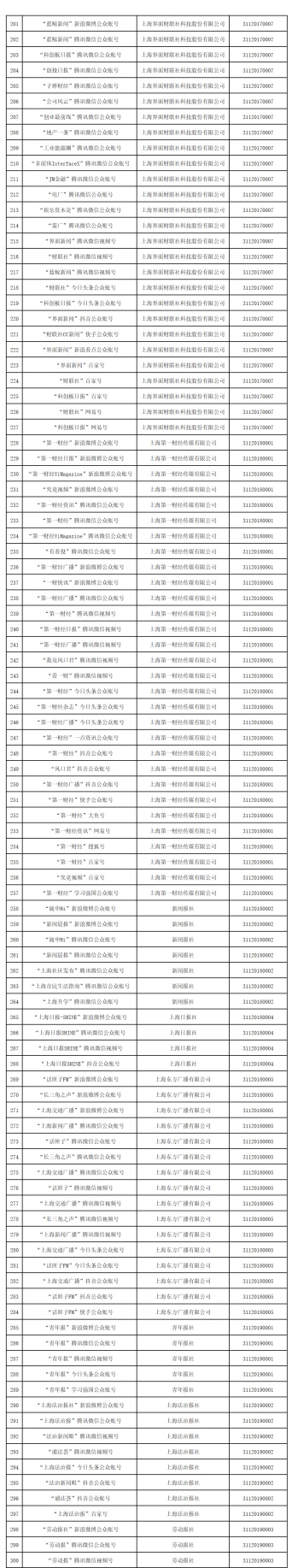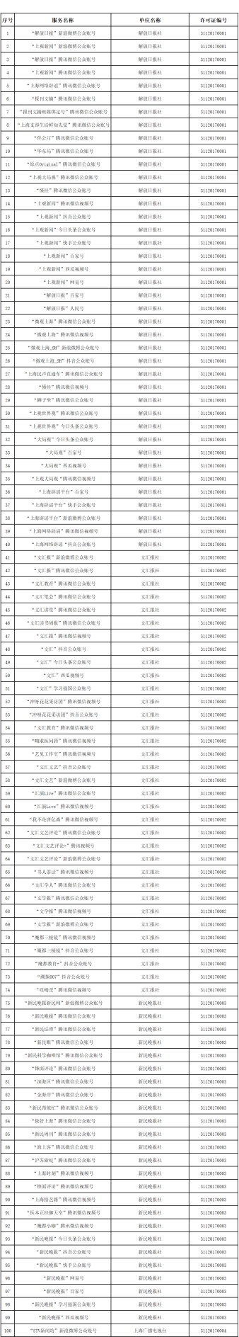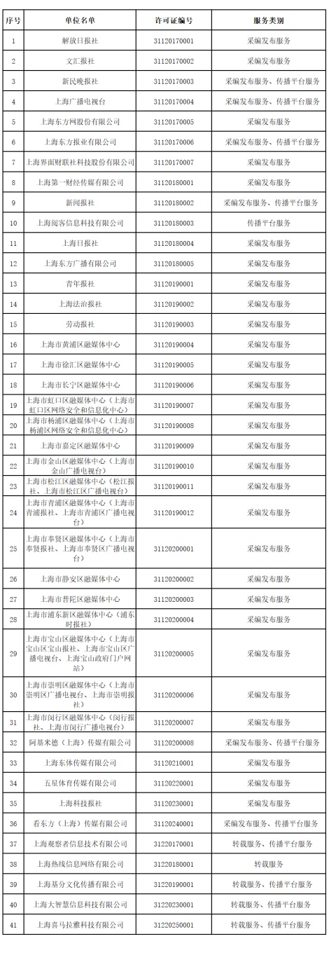 一、上海获得互联网新闻信息服务许可的单位信息(共41家)