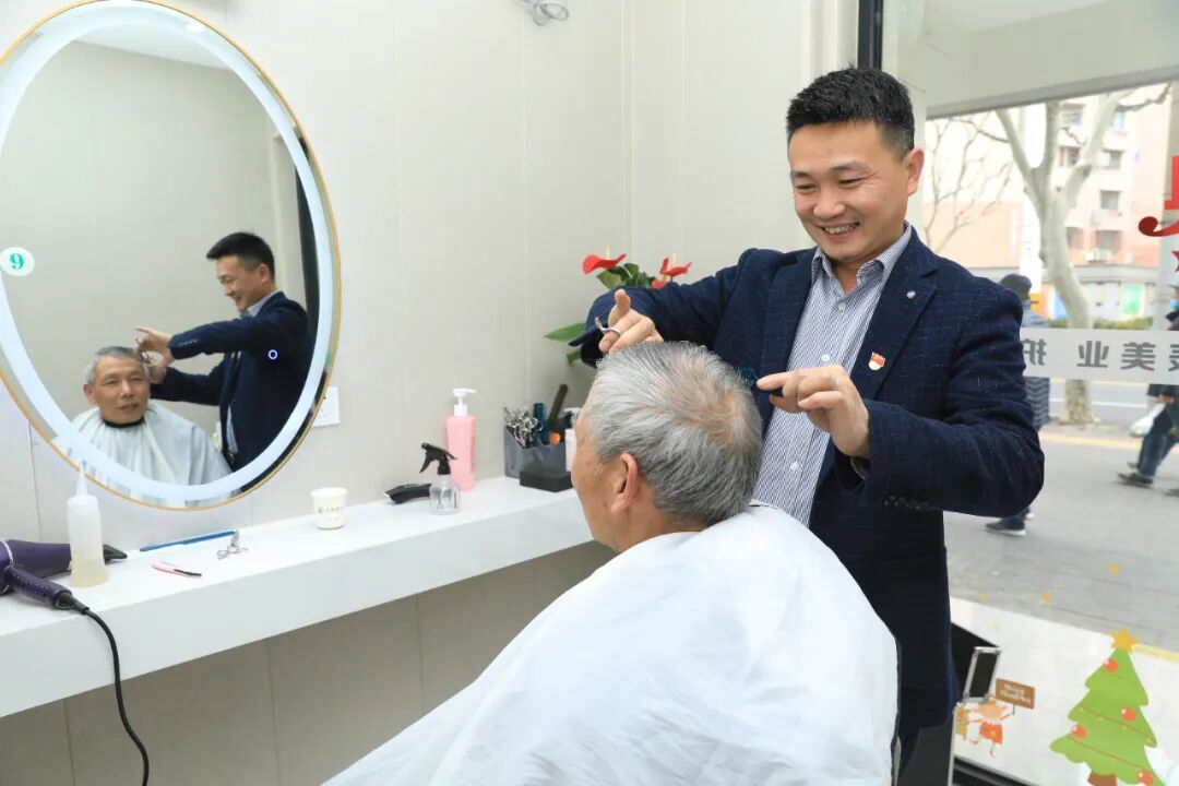 2024年,针对商户提出电动车充电难,他寻求街道帮助,最后合理规划停车区域并安装充电桩,解决商户的烦恼。在街区党支部的带领下,他与沿街商铺一起商讨如何营造一个优美、宜居、宜业的环境。他与来沪从业人员心贴心,为新就业群体量身打造暖心服务,在店里为网约车司机、快递小哥等提供热饭、休憩、充电等服务,更是在“二月二”龙抬头期间,为“奔跑者们”安排快剪绿色服务,受到了商户、居民、快递小哥们的一致好评。