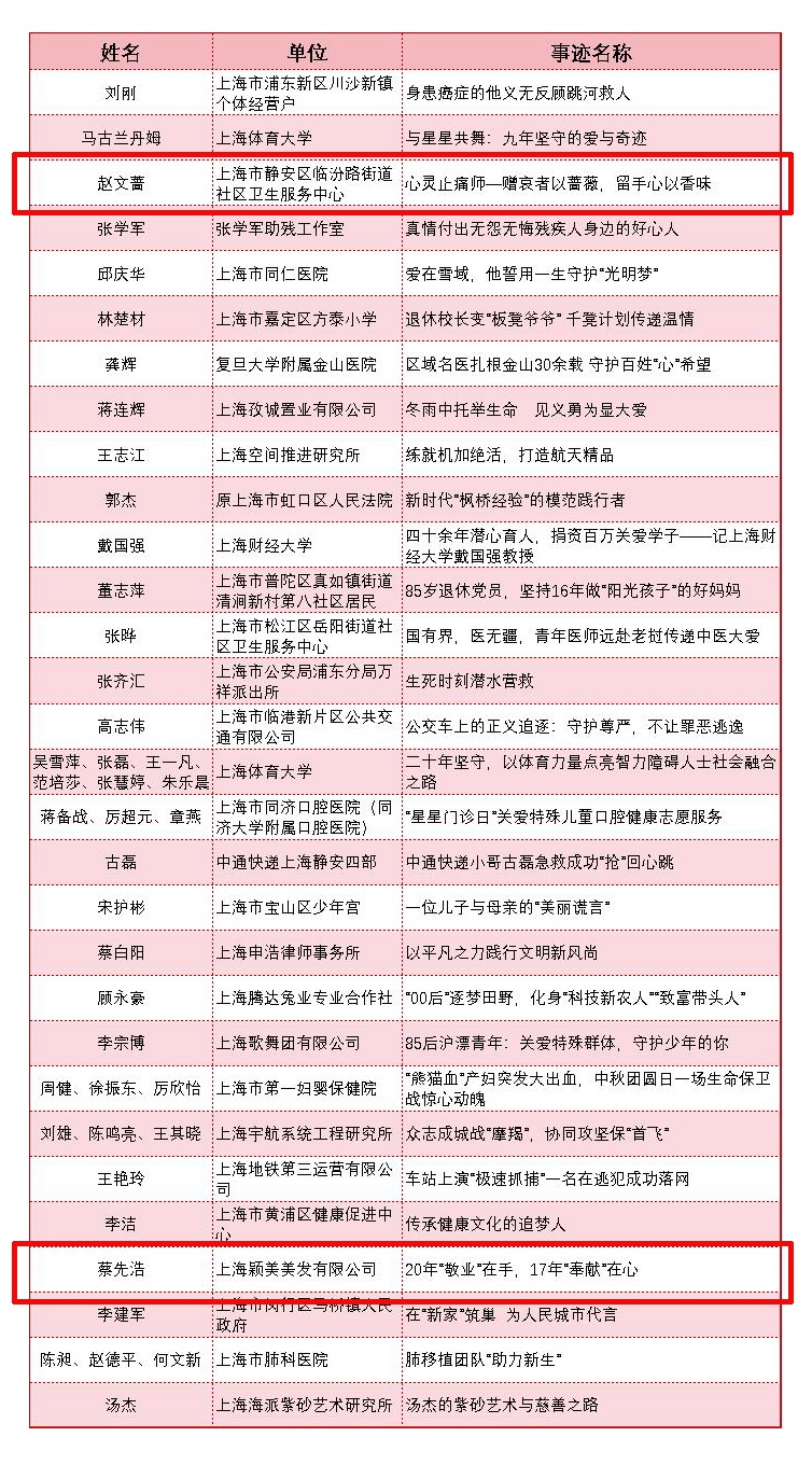 2025年度“上海好人”名单