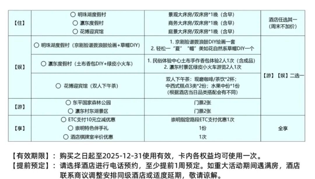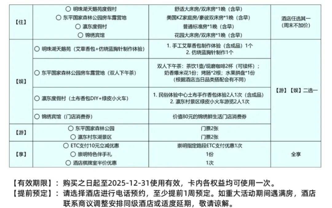 本次焕新推出的“乐龄PASS”采用“一价打包”模式,集结多元优质资源打造沉浸式出行体验。住宿方面,涵盖崇明花博迎宾馆、瀛东度假村等6大品牌酒店,以舒适环境与贴心服务保障休憩品质;游玩方面,囊括东平国家森林公园、西沙明珠湖景区、瀛东村东湖景区3大核心景点,让老年人深度领略崇明世界级生态岛的自然肌理与人文韵味;更搭配崇明特色伴手礼,将本地民俗美食文化融入旅途,从 “吃住行游购” 全链条满足出行期待。