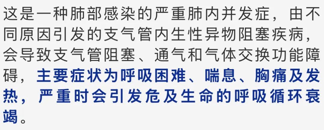 它的特点是起病隐匿、进展快,容易误诊漏诊,如果没有及时治疗,可能遗留闭塞性细支气管炎、支气管扩张症等后遗症,严重时危及生命。