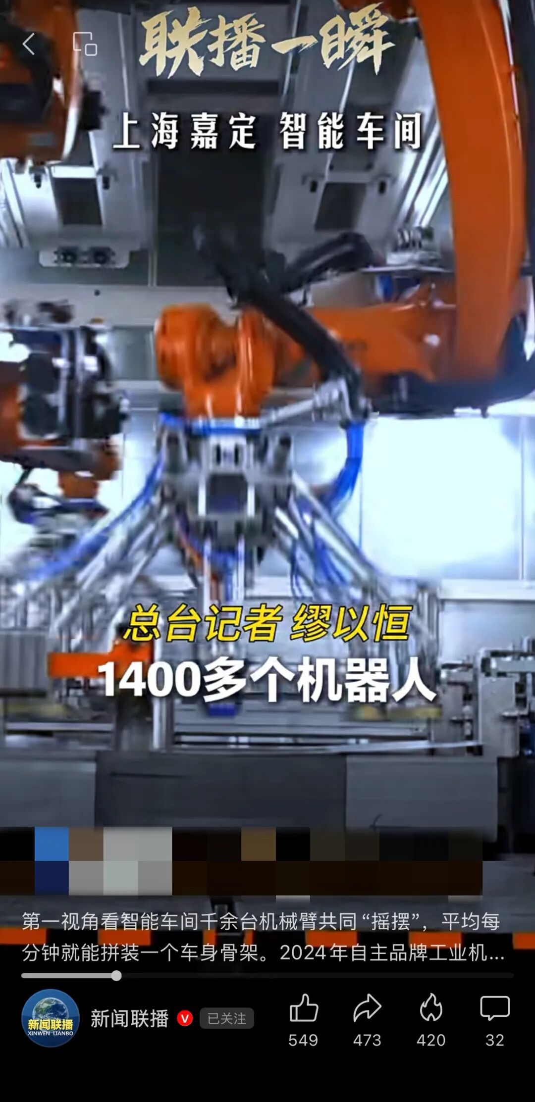 新闻联播用第一视角,带大家沉浸式感受智能车间千余台机械臂共同“摇摆”的场景。