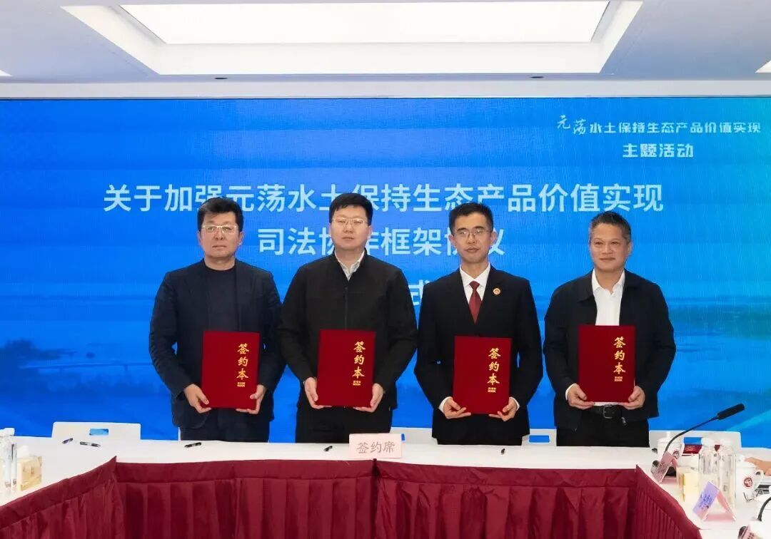 青浦区区域办、区发改委、区水务局、区人民检察院、区文旅集团现场联合签署《关于加强元荡水土保持生态产品价值实现司法协作框架协议》,加强元荡生态清洁小流域共保联治与生态损害司法赔偿协同机制建设,推动形成“区域协调、文旅赋能、水务指导、检察监督”的协同治理新格局。打破部门壁垒,形成监管与监督合力,推动从个案办理向类案治理、从末端修复向源头预防转变。