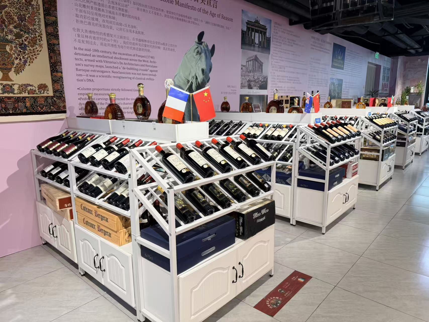 走入市集内,来自南非、伊朗、波兰、斯里兰卡、俄罗斯、法国、德国、澳大利亚等33个国家的红酒、零食、日用品等各类精选商品整齐摆放。