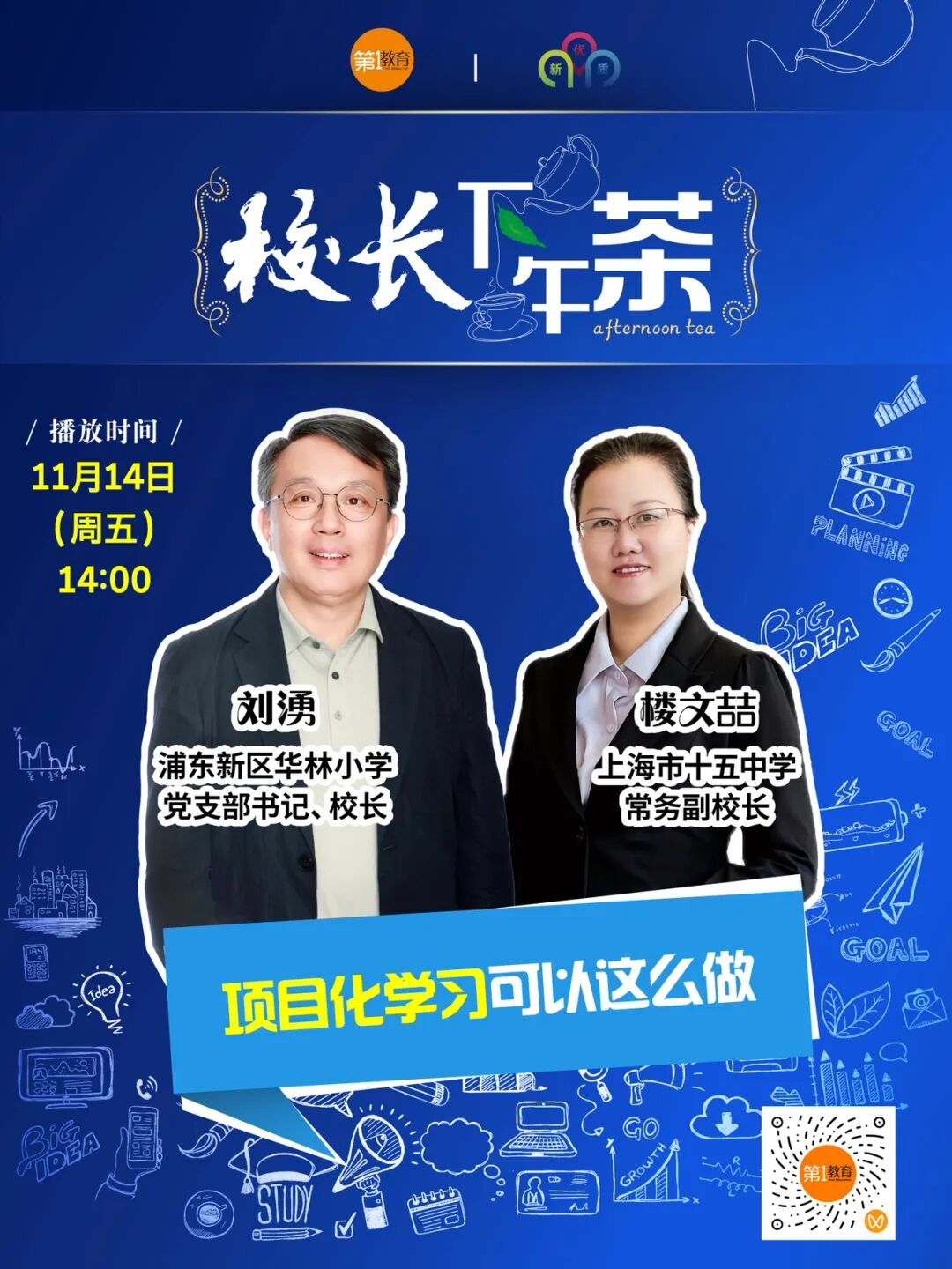 自2023年9月起,上海市新优质学校研究所、上海教育报刊总社新媒体平台“第一教育”共同推出“校长下午茶”节目,邀请新优质学校“掌门人”及相关教育专家走进演播室,畅聊教育理念与实践、分享经验与成果。