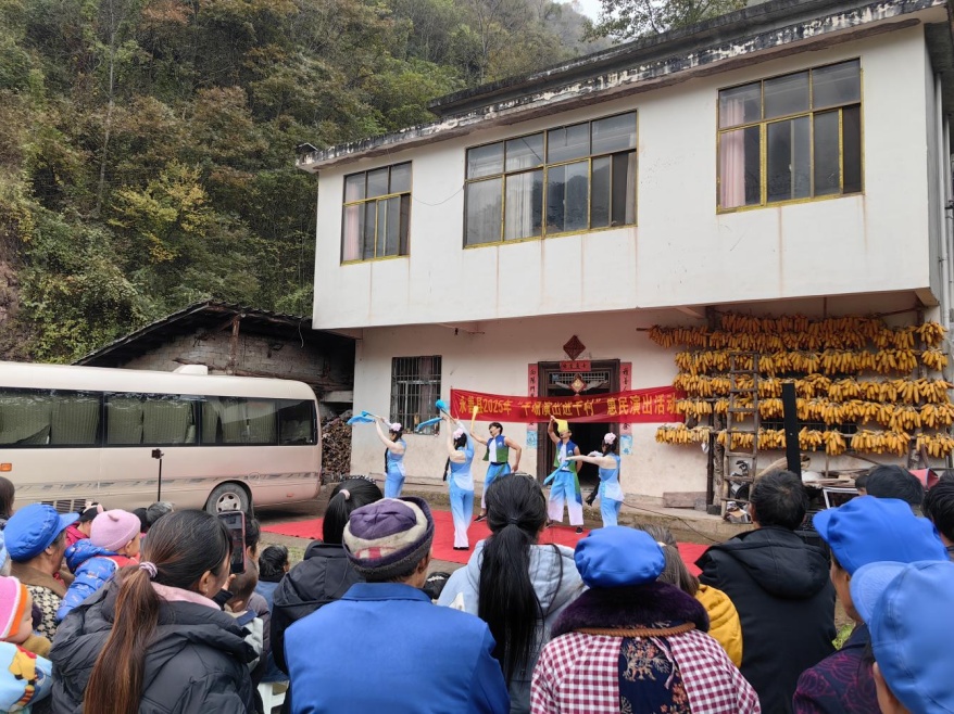 舞台车到达不了的地方,演员们就动手就近搭建简易舞台;遇到山路崎岖,全员便化身“搬运工”肩扛手抬道具。为赶早场演出,演员们清晨6点集合,历经数小时颠簸后,不耽误半点功夫,便立刻投入备演。成立至今,该团足迹已遍布永善县16个乡镇(街道)146个行政村(社区)。都说梦想就有多大,舞台有多大,溪洛渡艺术团的演员却说:“哪里有群众需要,哪里就是我们的舞台。”