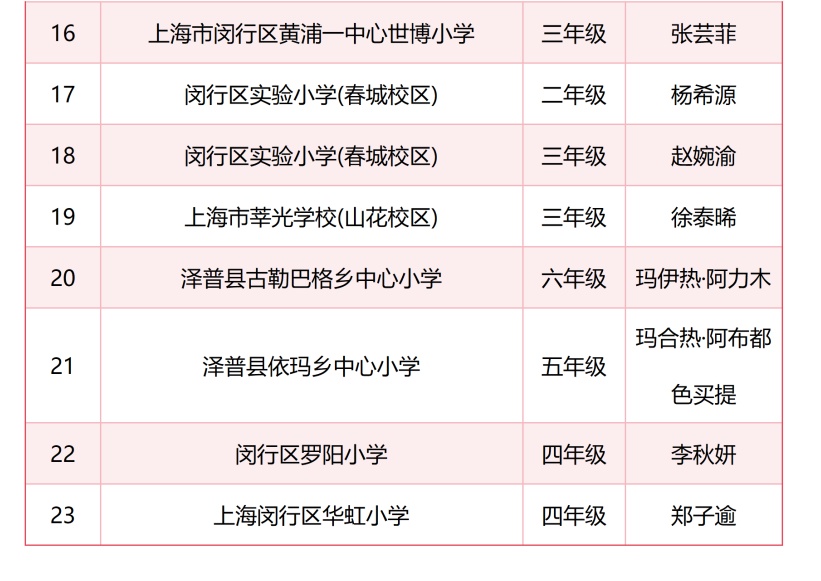 “我心中的节气文化”现场绘画活动围绕中医药与24节气主题展开,共收到闵行、泽普县两地65所中小学的171幅参赛作品。最终12所学校荣获优秀组织奖,70幅作品斩获各类奖项→