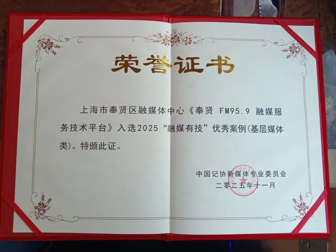 在技术重塑传播生态的 时代浪潮中 奉贤区融媒体中心 以创新之姿,破浪前行 在11月11日~13日召开的 2025中国新媒体大会上 奉贤区融媒体中心 “奉贤FM95.9融媒服务技术平台”成功入选 2025“融媒有技”优秀案例! 在技术重塑传播生态的关键阶段,中记协新媒体专委会延续“融媒有技”系列活动积淀的技术特色与精品导向,发起2025“融媒有技”优秀案例征集,以响应主流媒体系统性变革需求。 据介绍,自活动启动以来,共收到来自中央主要新闻单位、各地记协、相关科研机构、商业传播平台及技术公司申报的案例136件,经过多轮严格审查,最终遴选出30个优秀案例。 作为今年增设的“基层媒体特别推荐”类的10个优秀案例之一,奉贤区融媒体中心自媒体融合以来,积极探索,始终牢记技术创新赋能主流媒体系统性变革,从现实需求出发,实现了从“单一发声”到“立体传播”的华丽蜕变,在全国众多参赛案例中崭露头角,获得专家评审的一致认可。 “小切口、大作为” 以简洁高效的技术架构 让智能体覆盖媒体业务全流程 为基层媒体融合发展 探索出了一条可复制、可推广的 创新之路 这是一次技术的革新 更是一次传播的革命 奉贤区融媒体中心 正以铿锵之步 在新时代的传播格局中 讲好奉贤故事 传递奉贤声音 展现奉贤风采