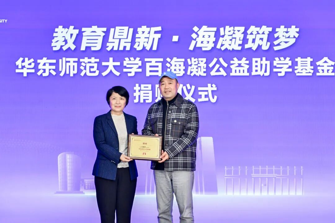 白海宁在发言中表示,教育是国家发展、民族振兴的基石,人才是推动社会进步的核心力量,华东师大始终以培育栋梁之才为己任,为国家做出了重要贡献。北京百海凝慈善基金会成立以来,一直秉持“凝聚爱心、服务社会”的宗旨,支持教育公益等领域发展。他表示,希望此次捐赠能够为华东师大的教育改革搭建新的“试验田”,希望基金的成立能够成为青年学子追梦的“加速器”,更希望尽己所能为教育强国事业贡献一份力量。