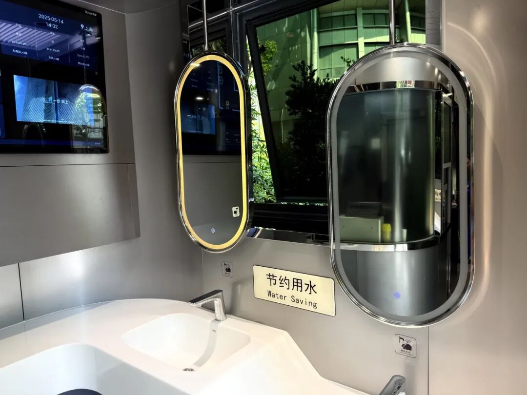 第三卫生间采用感应开门、智能马桶、感应皂液器等设备,全程实现“零接触”操作;