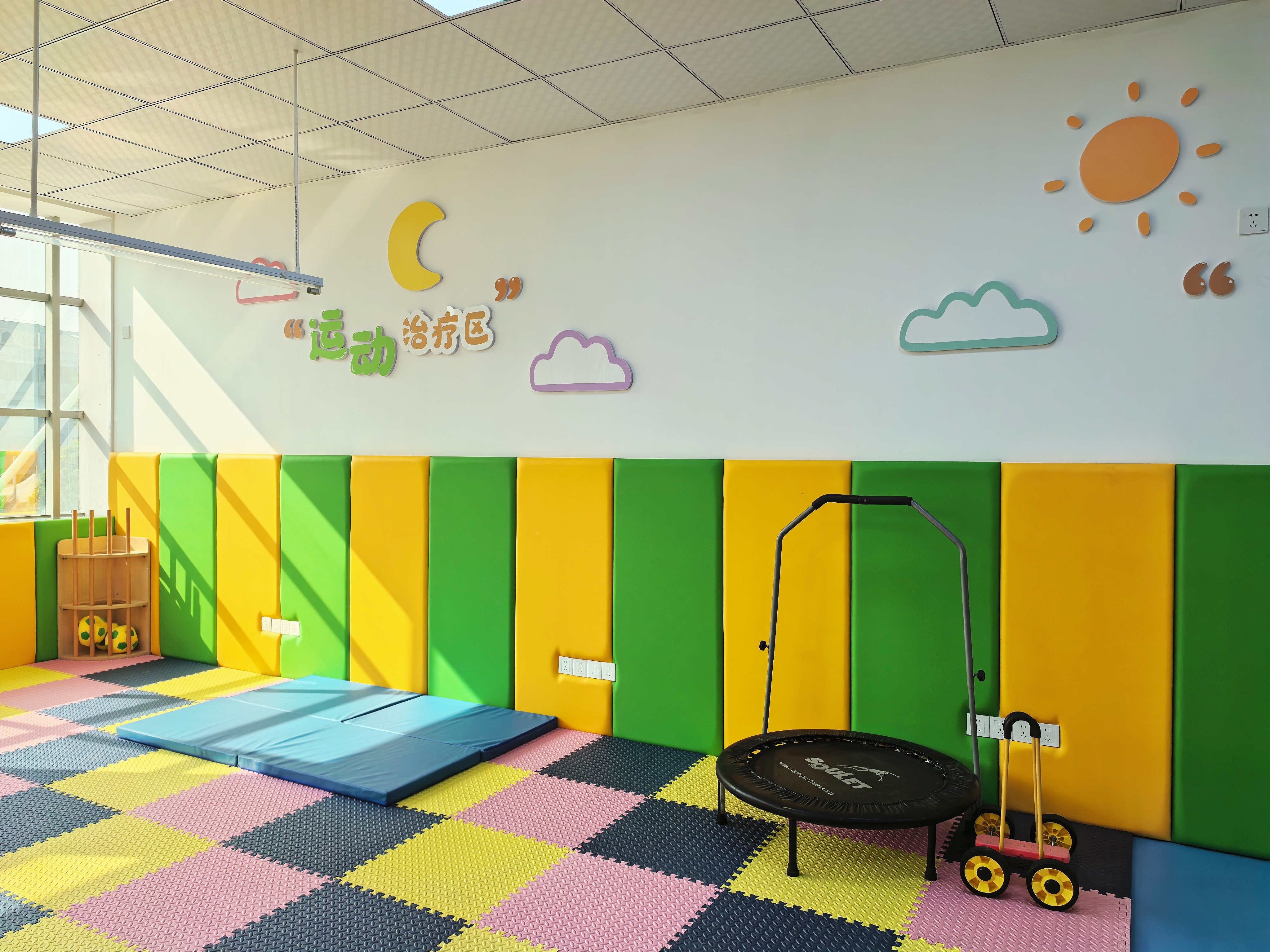 新建成的儿童康复中心由作业理疗区、言语康复区以及运动感统区三大功能区组成。其中,作业理疗区配备精细动作训练桌、手功能康复器械、串珠等,可针对儿童手部协调性、生活自理能力进行强化训练。言语康复区则引入了智能语音评估系统、互动式语言训练软件,可结合游戏化教学,改善儿童语言发育迟缓、构音障碍等问题。而在运动感统区,儿童可以通过平衡步道、感统积木、触觉按摩球等设备,进行多感官刺激,以提升大运动能力和本体感觉。