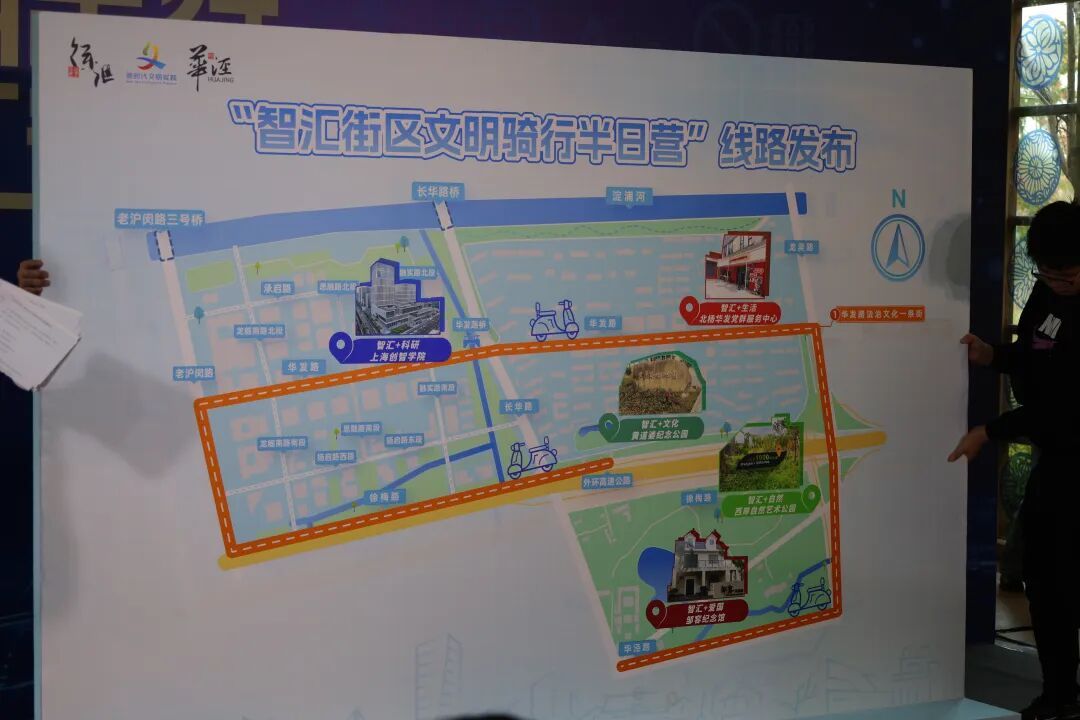 “文明出行 智汇守护”——华泾镇新时代文明实践智汇街区主题活动,日前在徐汇区西岸自然艺术公园举行。本次活动以“智汇+”为笔,有机融合科技、文化、自然与生活场景,推动文明实践从单一活动向可持续、场景化的生活方式转型,展现出“文化铸魂、科技赋能、实践育人”的鲜明特色。 活动现场,西岸自然艺术公园新时代文明实践点正式揭牌。华泾镇还发布了《新时代文明实践活动项目清单》,并为上海创智学院博士生文明实践队、西岸自然艺术公园树篱学堂文明实践队授旗。同时,文明大市集也汇聚了多项便民服务与互动体验。 活动现场的互动体验 随着鸣笛发令,骑行队伍正式出发,跟随活动现场发布的“智汇街区文明骑行半日营”线路开启文明之旅。骑行队伍自黄道婆纪念公园启程,途经上海创智学院、北杨华发党群服务中心、西岸自然艺术公园、邹容纪念馆等站点,每站均设有特色文明体验项目,融合非遗传承、AI科普、社区互动与红色教育。完成五站打卡集章的市民,可在终点兑换“文明骑行头盔”,将“文明、安全、低碳”的理念融入骑行的每一程。 “智汇街区文明骑行半日营”线路发布 本次活动以创新形式整合绿色出行、街区资源、文明实践与市集互动,为现代城市文明建设探索出新路径。同时,其也标志着华泾镇的文明实践工作迈上新台阶,推动“智汇街区”品牌建设走向深入。