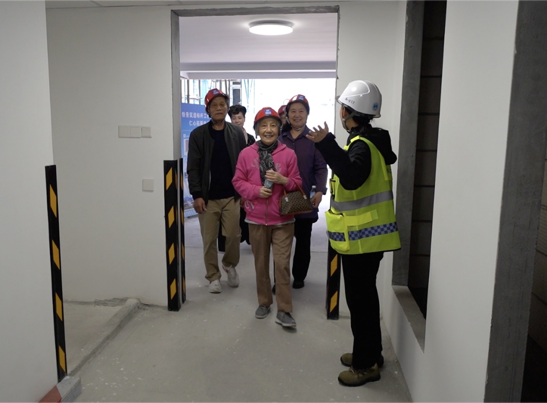 经过近九个月的施工,项目迎来了主体封顶的日子,为了满足居民对新房的期待,施工方邀请原住居民以主人翁的身份走入项目现场,监督项目质量、了解项目建设进展。走进样板间,居民们摸摸墙壁,开开窗户,再看一眼独立的卫生间和厨房,心情异常的激动。“以前都是预制板的,50年房子住下来,这个房子都酥掉了,冬天冷夏天热,你看,现在这房子多好,还是环保材料,防水、隔音多帮我们做好了,进来都不需要什么大装修,政府考虑很周到的,这样我们就也省了钱了。”居民刘阿姨激动地说道。