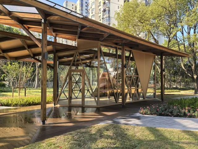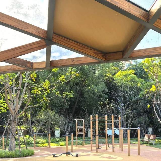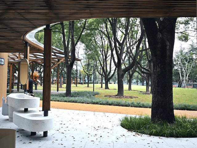 在功能完善方面,优化场地内基础配套设施,树立社区空间新样本。休闲廊架升级为钢木结构,为居民提供聊天、观景的舒适区域;联合康健街道引入社区服务资源,增加阳光书屋室内活动空间;公共卫生间升级无障碍设施,适老化卫生间均配备紧急呼叫装置,增设育婴室方便家长使用;园内重新布局照明系统,提升绿地的便捷性与安全性。