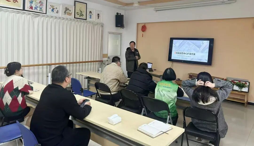 街道以激活闲置空间为核心,构建“行政推动+社区参与”双向联动机制,推动社区更新从“单一管理”向“多元共建”转型。一方面,街道主动对接区土地储备中心,厘清空地权属与管理责任,于2024年末成功签订土地看管协议,将空地纳入统一管理,为功能转型筑牢制度保障;另一方面,由街道牵头、十七二居委会组织召开居民议事会,邀请党员代表、社区志愿者、社区规划师及本溪路幼儿园代表等多方参与,围绕功能布局、儿童友好、植物种植等议题广泛征集意见,最终形成“全龄友好、四季可游、居民共管”的改造共识,凝聚起坚实的民意基础。