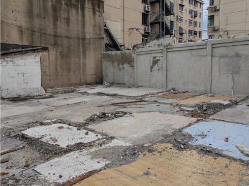 2024年4月,定海路街道携手同济大学社区规划师团队,成功将杨树浦路3061弄内一处闲置场地改造为市民园艺中心一期,打造出以花为媒、向绿而行的社区公共空间。同年下半年,同小区内一处旧屋征收拆除后,留下了一块铺地杂乱、立面陈旧的空地,不仅与园艺中心一期的优美环境形成强烈反差,破坏了社区视觉风貌的整体性与协调性,还因杂草丛生、易堆积垃圾,滋生蚊虫且存在安全隐患,给社区环境卫生与日常管理带来双重挑战。 为破解这一治理难题,定海路街道主动谋划,启动市民园艺中心二期工程,通过多元协同、精准规划,将昔日“疤痕地块”升级为全龄共享的绿色空间。 改造前
