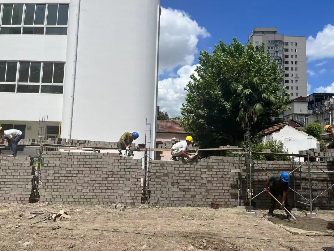 一是重建围墙,筑牢安全防护屏障。原幼儿园围墙为旧房墙体改造而成,部分区域留有封堵窗户,存在结构安全隐患。街道按规范重建2.8米高围墙,将监控线缆统一规整并隐蔽敷设于墙体内部,同步升级周边排水系统,避免雨天积水湿滑;同时在东侧围墙增设通行小门,实现园艺中心与幼儿园无缝衔接,让这里成为孩子们认知植物、实践种植的“自然课堂”。