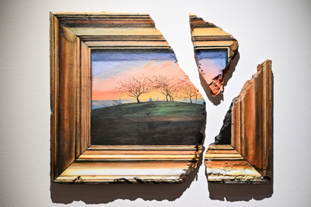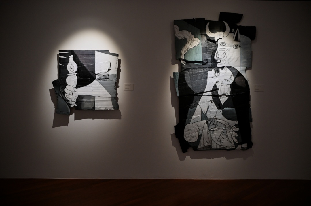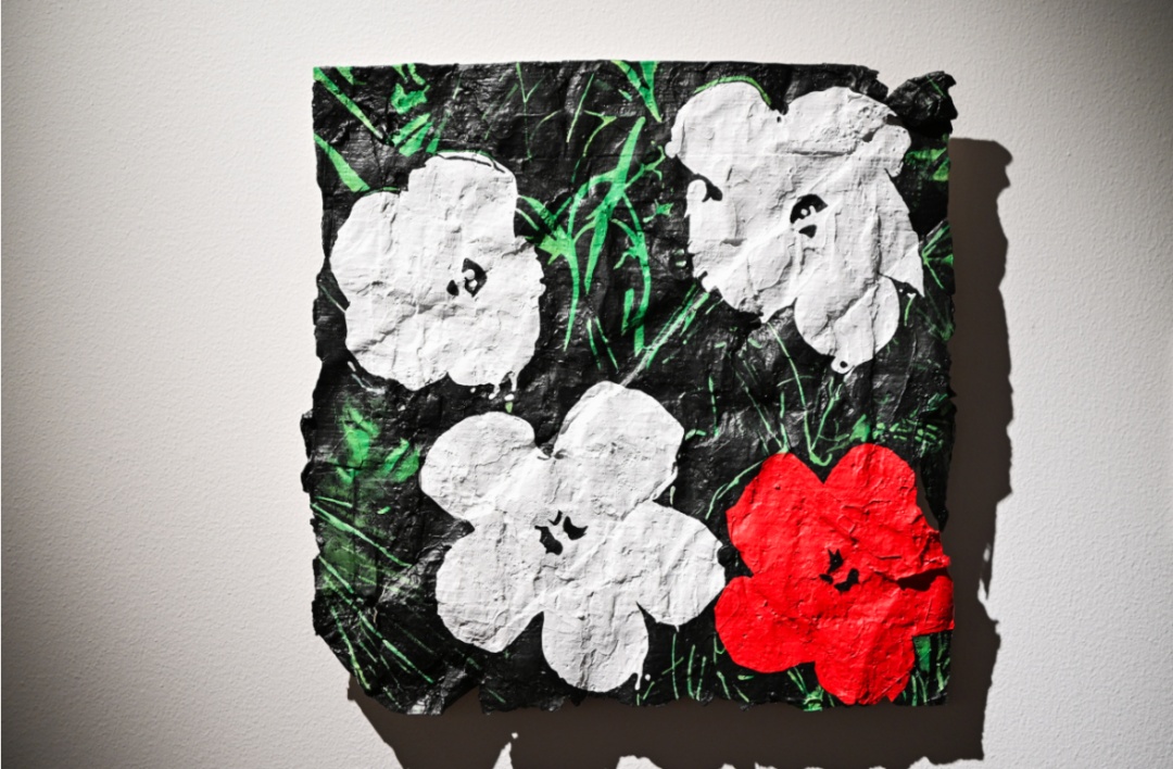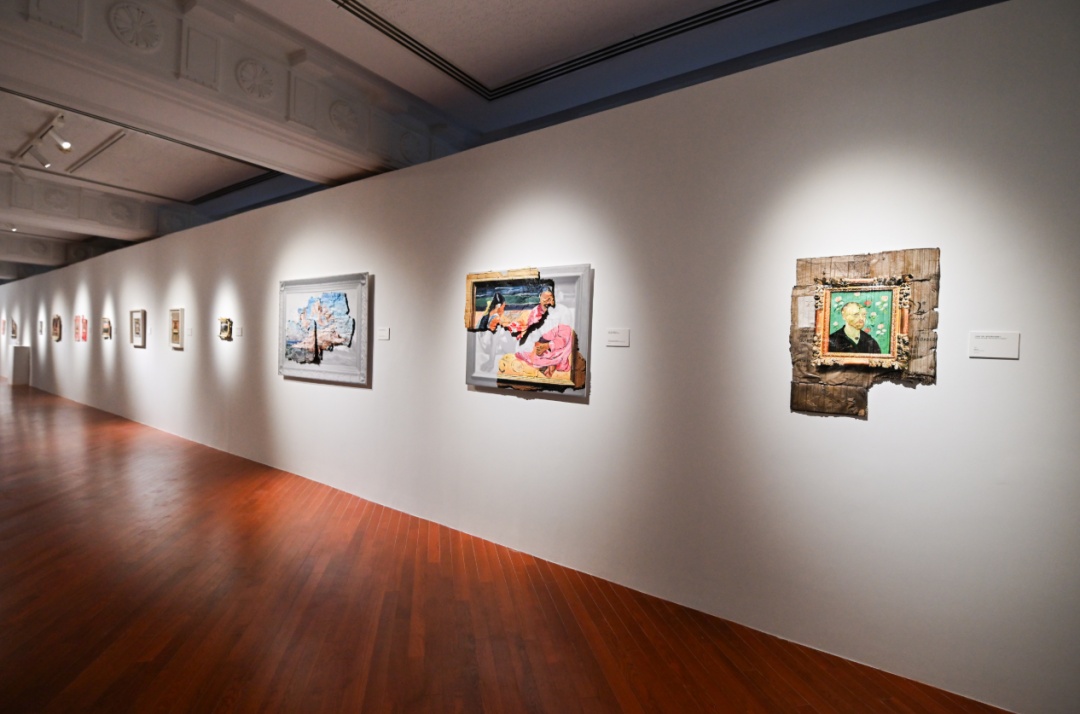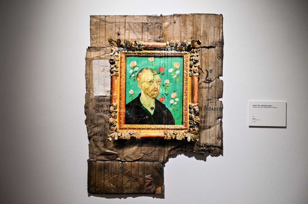 在重构毕加索《哭泣的女人》时,他以脆弱纸板为载体,用破碎平面与碎片化处理强化情绪,让原作中人类苦难的隐喻,转化为对经典象征价值的深度反思;再现梵高《献给高更的自画像》时,他通过繁花浮雕画框与光影游戏,引导观众关注纸板的“贫瘠脆弱”,巧妙呼应梵高与绘画行为的复杂关联。