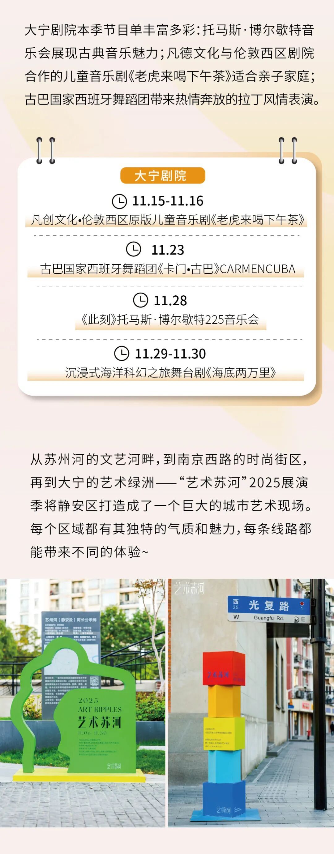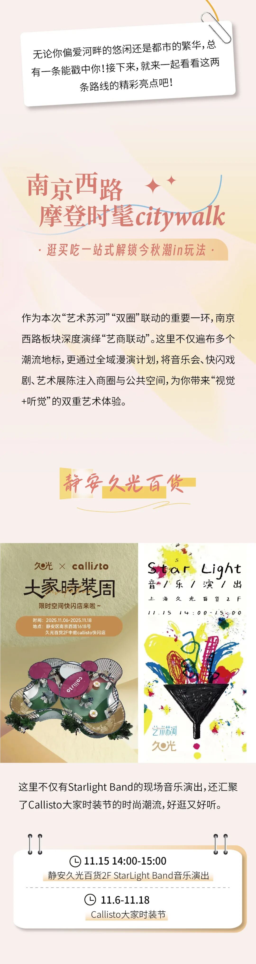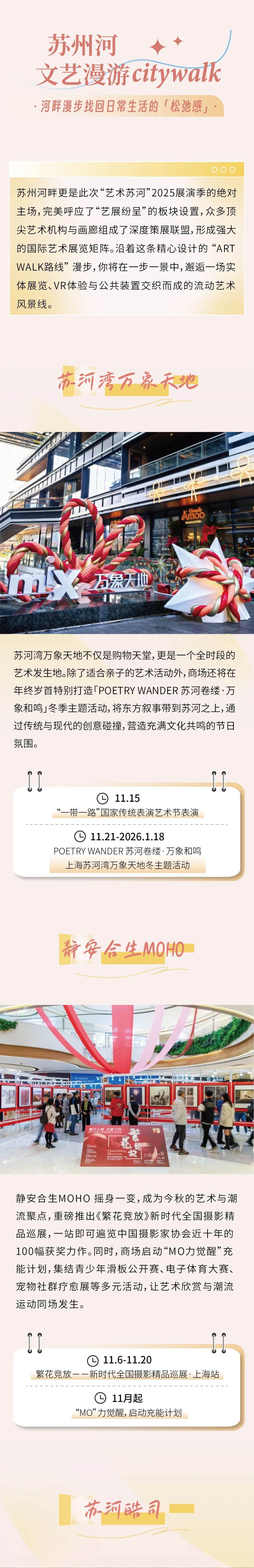 “艺术苏河”2025展演季启幕啦!这个秋天,不妨换种方式感受城市——用一场City Walk串联起静安的商圈逛吃、艺术展览以及剧院演出~