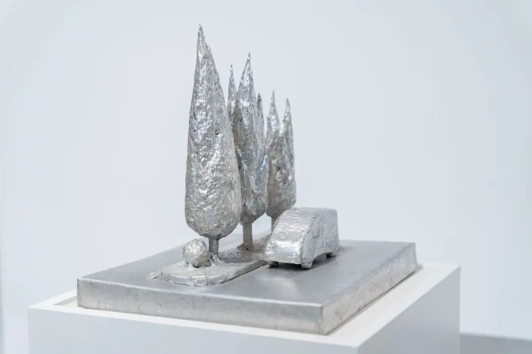 艺术家方阳的《银色风景系列》以金属锻造、焊接、锈蚀绘画及工业零件组合而成,将城市日常景观通过手工与机械的融合,映射出工业时代自然与人文的交织图景。现场观众王成在这组作品前驻足良久:“这位青年艺术家的作品以简洁而富有张力的形式语言,将土地、植物、建筑等元素转化为承载个体记忆与社会经验的精神符号,表达对人与自然、个体与集体之间关系的思考,非常打动我。”