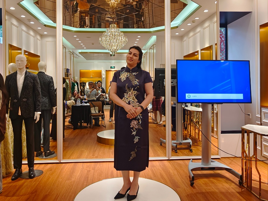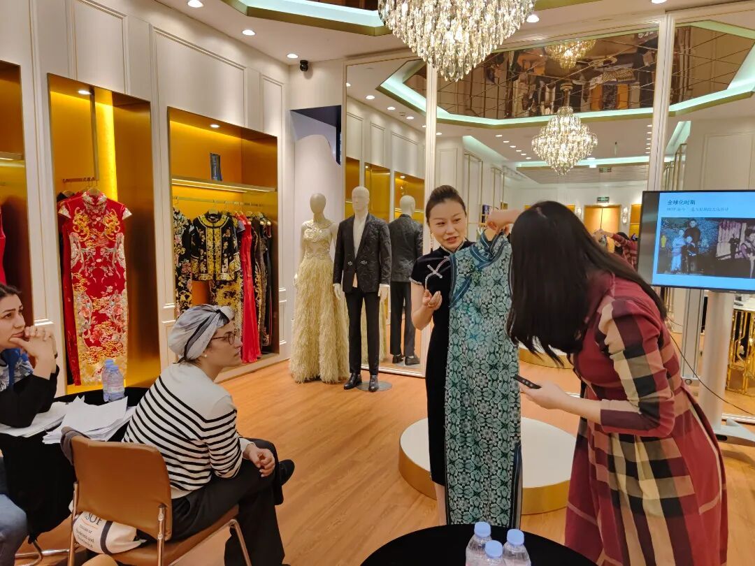 近日,走进虹口——虹口区外国人才中文培训班(秋季班)结业课程把课堂搬进了蔓楼兰海派旗袍门店中,来自本市各大高校、科研机构以及本区外资企业的外籍人才们近距离感受海派旗袍的独特魅力与上海文化的深厚底蕴。 “制作旗袍需要68道工序,其中8道工序是最重要的。”课堂上,蔓楼兰的工作人员介绍了旗袍的起源、历史和制作工序,并以店铺内展示的旗袍为范本,向外籍人才们细致讲解海派旗袍的历史渊源、工艺特点与文化内涵。从盘扣的传统工艺技法,到不同面料的运用,再到旗袍的搭配技巧,工作人员的讲解生动有趣,还邀请外籍人才触摸面料、观察盘扣细节,让大家对旗袍的认知从“视觉欣赏”转向“触觉感知”。 现场,来自伊朗的纱哈耶(Shaghayegh)还在工作人员的指导下一针一线仔细地绣着旗袍上的图案,娴熟的指法引得在场人员啧啧称奇。 “我平时在家就喜欢女红,所以用起针线来特别熟练。”纱哈耶边向记者展示手机中伊朗传统服饰的照片边说,这些衣服领口、袖口上的图案和旗袍上的图案很类似,而且也是由手工制作的,这就是文化上的共同点。 随后,外籍人才们纷纷挑选起心仪的旗袍试穿。纱哈耶选择了一件藏青色的旗袍,并在工作人员的指导下摆起了优美的姿势。“旗袍穿起来也很有亲切感,它不仅是一件服饰,更是艺术品!”纱哈耶说。 经过挑选,大家穿上了自己心仪的旗袍和上衣,并共同留下合影。 在当天的课程中,上海外国语大学中文学院的张熠程老师还向大家介绍了常见服饰的中文表达,并邀请外籍人才们现场对话,介绍这些中文在日常生活的运用。 本次虹口区外国人才中文培训班(秋季班)自9月20日起开班,每周一次。除了在教室中教授外籍人才们学习中文外,还把课堂搬到了虹口的街道、菜场、医院和社区文化活动中心等虹口特色景点、地标。