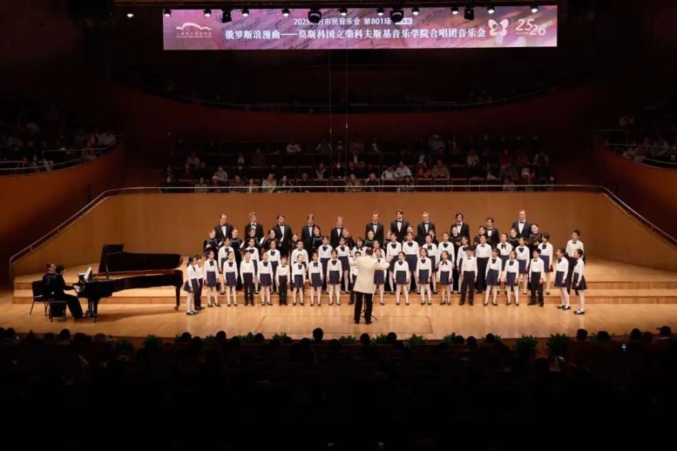 近日,莫斯科柴科夫斯基音乐学院(以下简称“柴院”)合唱团在上海东方艺术中心带来首次来华巡展的最后一站演出。此站柴院合唱团特邀上海东方艺术中心童声合唱团同台献演返场曲目《灯火里的中国》和《这世界那么多人》,在全场大合唱的温暖气氛中续写中俄文化友谊。横跨6个月,7000余人次线上线下参与的2025“柴院在东艺”系列活动就此圆满收官。