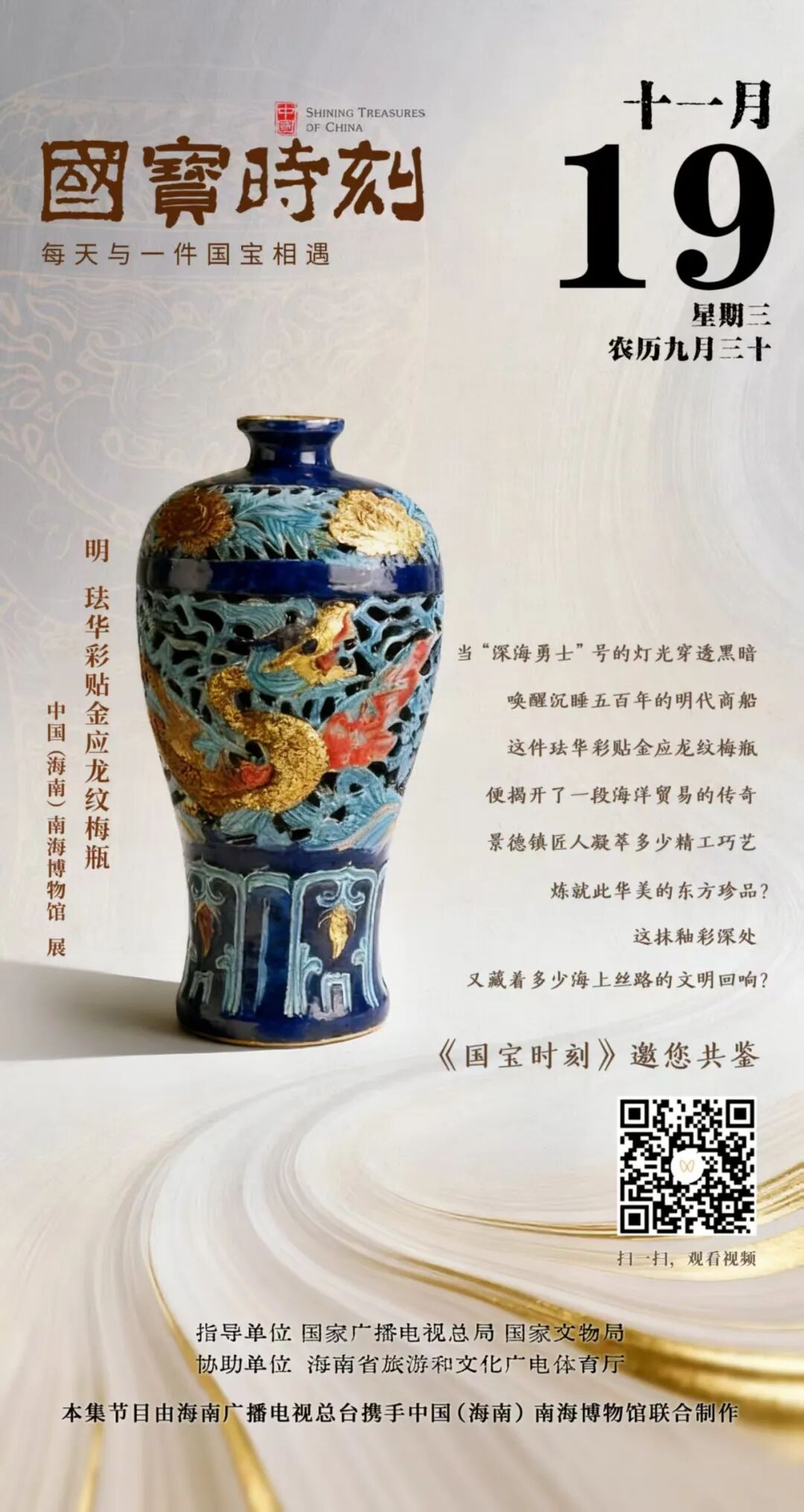 当“深海勇士”号的灯光穿透黑暗,唤醒沉睡五百年的明代商船。这件珐华彩贴金应龙纹梅瓶,便揭开了一段海洋贸易的传奇。景德镇匠人凝萃多少精工巧艺,炼就此华美的东方珍品?这抹釉彩深处,又藏着多少海上丝路的文明回响?《国宝时刻》为您揭秘!