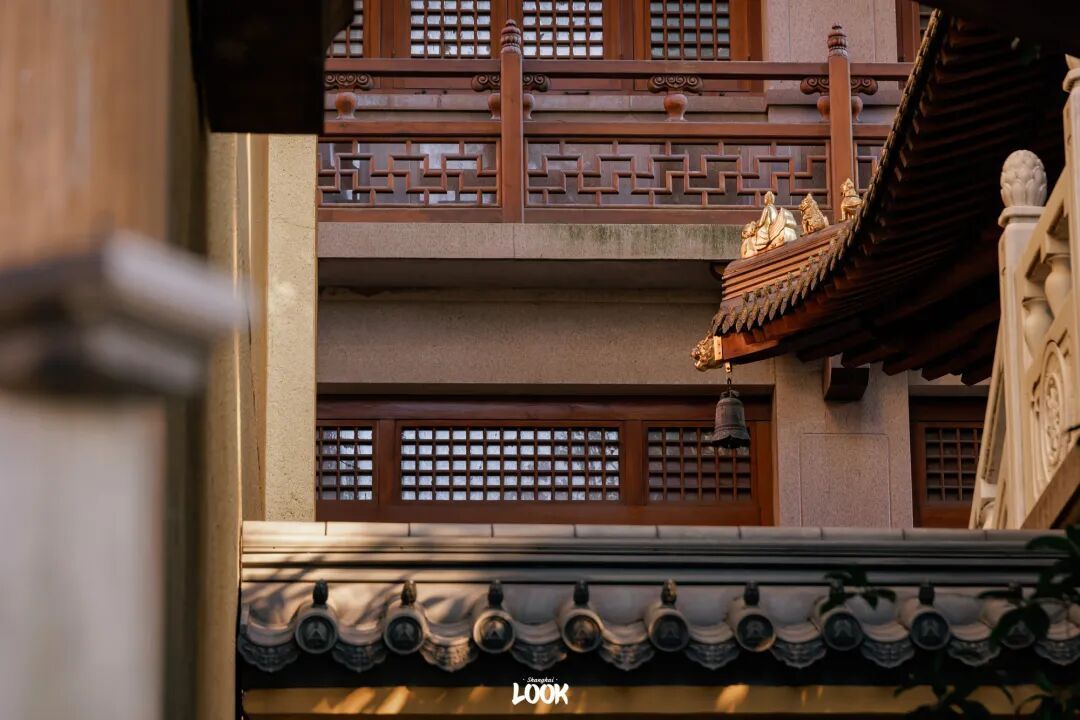 静安寺的层层建筑与树木的挺直相照应,显现出一种和谐的东方美学。