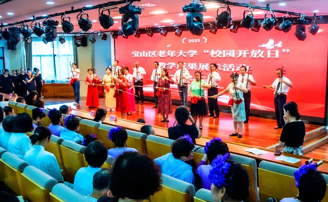 在宝山区老年大学,“党建引领、文化聚力、科技赋能、志愿先行”的老年教育服务生态,让银发群体在学习中传承文化、服务社会、绽放光彩,为构建老有所学、老有所为、老有所乐的老年友好型社会不断创新实践。