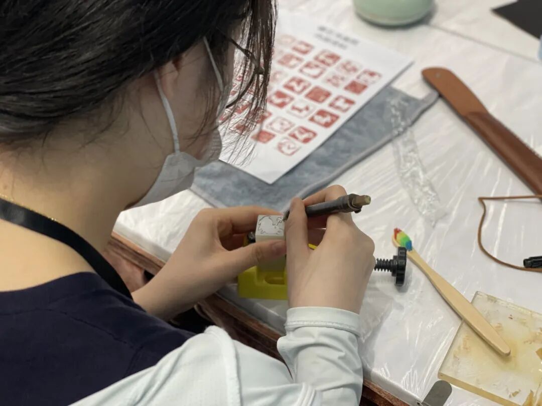 篆刻作为中国传统的艺术形式之一,蕴含着深厚的文化底蕴,它是书法和镌刻相结合的传统艺术,让我们一起在篆刻中感受创新精神与开放气质,在印章的方寸之间,让岭南的温润南风与江南的典雅沪韵相交织,表达出你的“其命惟新”。