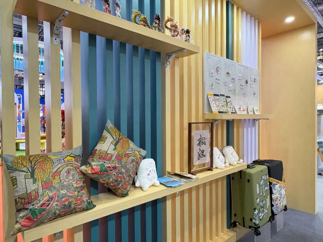 互动打卡区里,精心设计的特设打卡机位和集章打卡区颇受欢迎。除了可以解锁AI画风与松江文旅地标合影留念,观展者还可以现场领取“漫游印记”手账本,在展台内体验一番便可以打卡集章,收集到各具特色的松江特色印记,还能抽奖获取“符号松江”首发文创的特色好物。松江的顾绣、上海剪纸、余天成堂传统中药文化、丝网版画、松江刻漆技艺、手鞠制作技艺等非遗项目作品也亮相现场,为观展者生动呈现松江深厚的人文内涵。