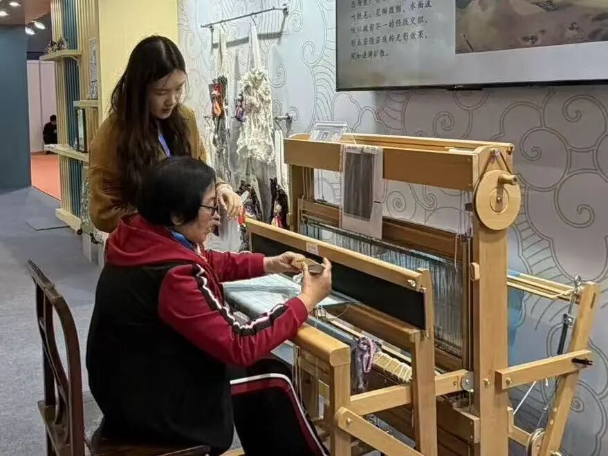 在四时和院金石篆刻区里,泗泾古镇、南村草堂等松江知名地标刻入印章,在传统文人雅趣中挖掘地标符号的别样表达。鼎天时尚织造区里,由南宋朱克柔创作的经典缂丝作品《莲塘乳鸭图》也在提花织造数字孪生技术的辅助下一展风姿,十足吸睛。尤为值得一提的是,鼎天时尚还通过AI技术糅合创作,为这幅未完成版的传世名作补上了“未尽之笔”,也让松江提花在数字时代焕发新生。