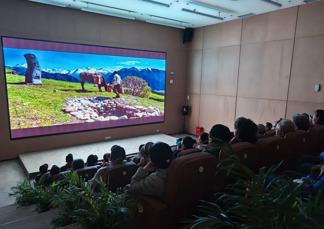 展览结束的前一天,文化馆还放映了电影《鲜花》,通过展现哈萨克族阿肯弹唱的艺术魅力与新疆人民的和谐生活,让观众仿佛置身草原,体会到他们“生活如歌”的诗意与热情。
