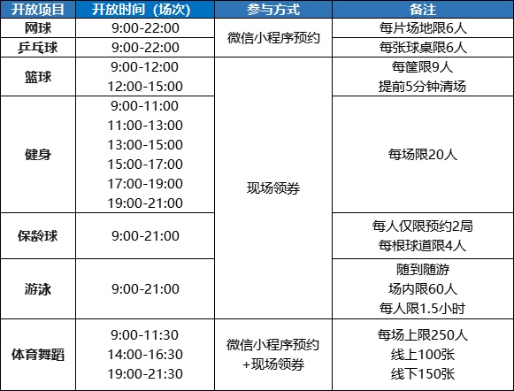 11月25日至11月28日,市民每天9:00—22:00可通过“上海市体育场馆设施管理中心”微信小程序免费预约场地,先到先得,约满为止。