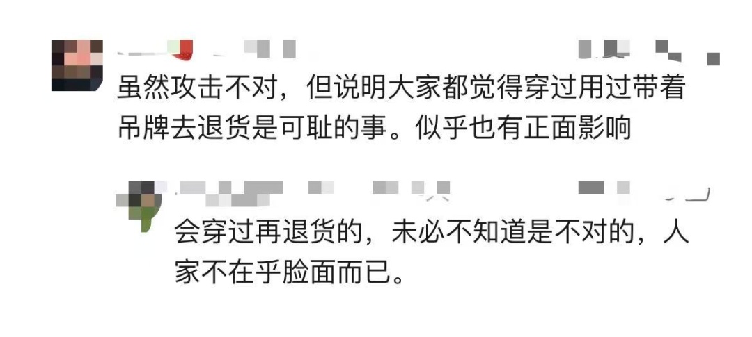 ■也有网友提出,这也侧面说明了“为了蹭穿保留吊牌的人”多么招人恨。