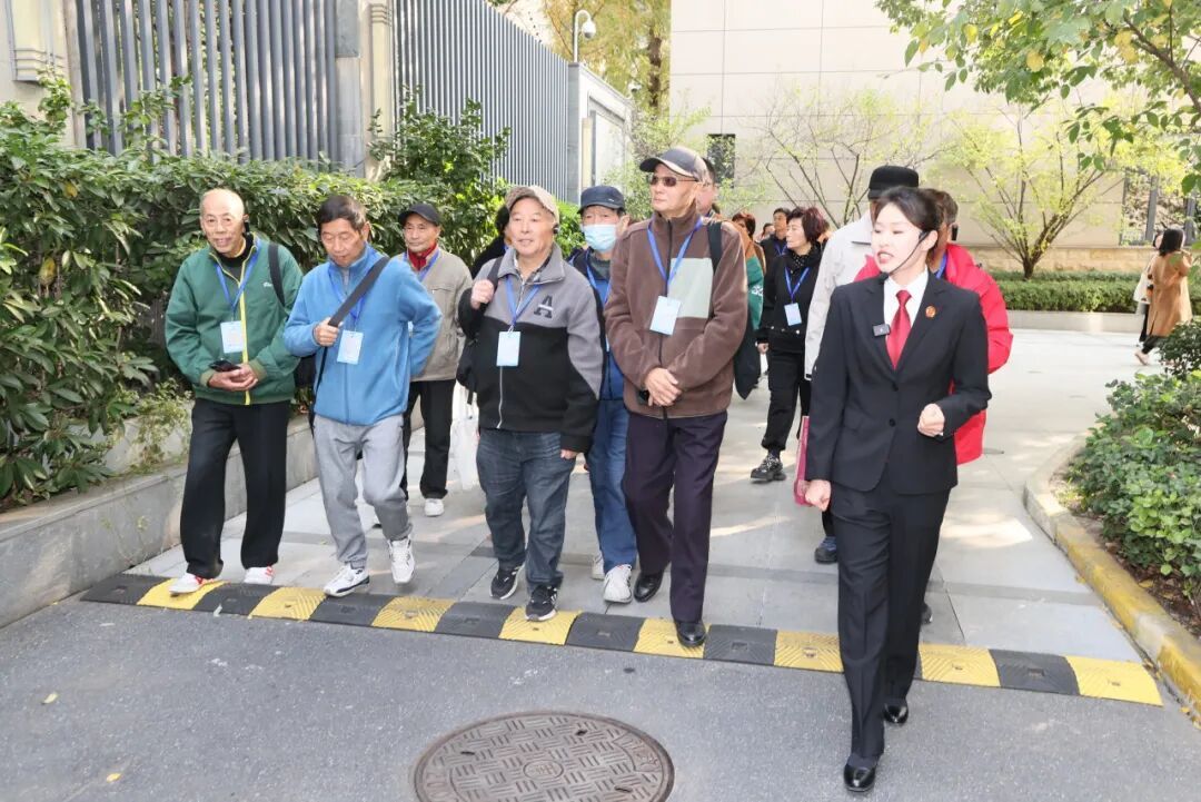法官助理姜悦担任讲解员,在她的引导下,老年朋友们率先领略了“上海市花园单位”的独特风景,各类绿植错落有致,为庄严肃穆的法院增添了生机。“全国文明单位”、全国“为群众办实事示范法院”等荣誉高悬墙上,引起参观群众啧啧称赞。