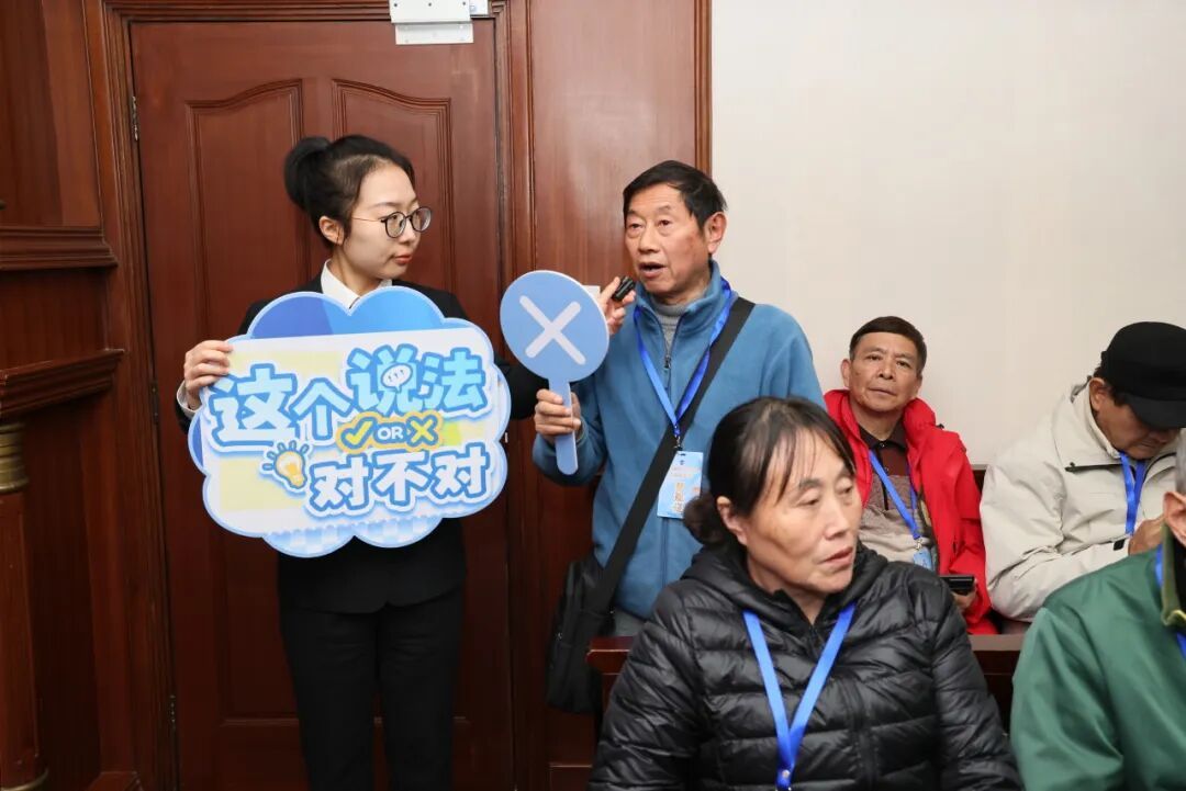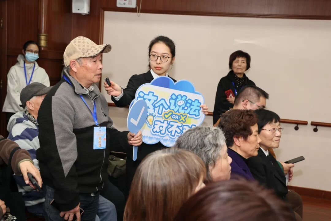 讲解员抛出“能否自己申请恢复为完全民事行为能力人”“自书遗嘱是否必须见证人在场”“老人能否指定自己的监护人”等与老年人生活密切相关的问题,老年朋友们踊跃举手、积极回答,现场气氛十分热烈。
