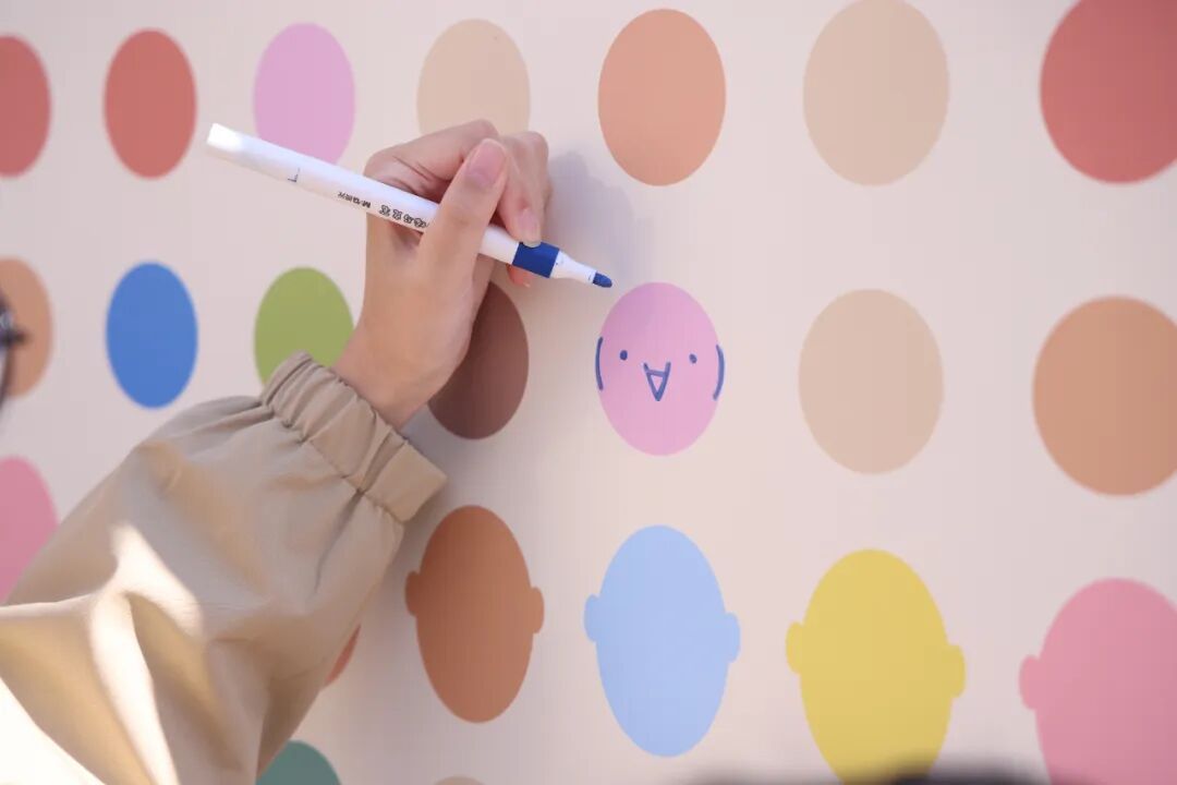 现场学生在“你笑起来真好看”展区绘制笑脸