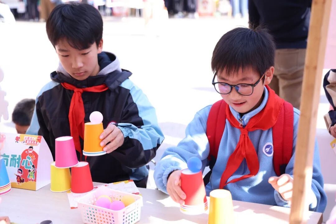 上海市徐汇区建襄小学的“‘杯’有耐心”叠塔,从最简单的纸杯层层堆叠,到塔顶托球的平衡挑战,都暗藏压力管理的智慧。学生在反复尝试中接纳失误,明白“稳中求进”,理解“欲速则不达”。
