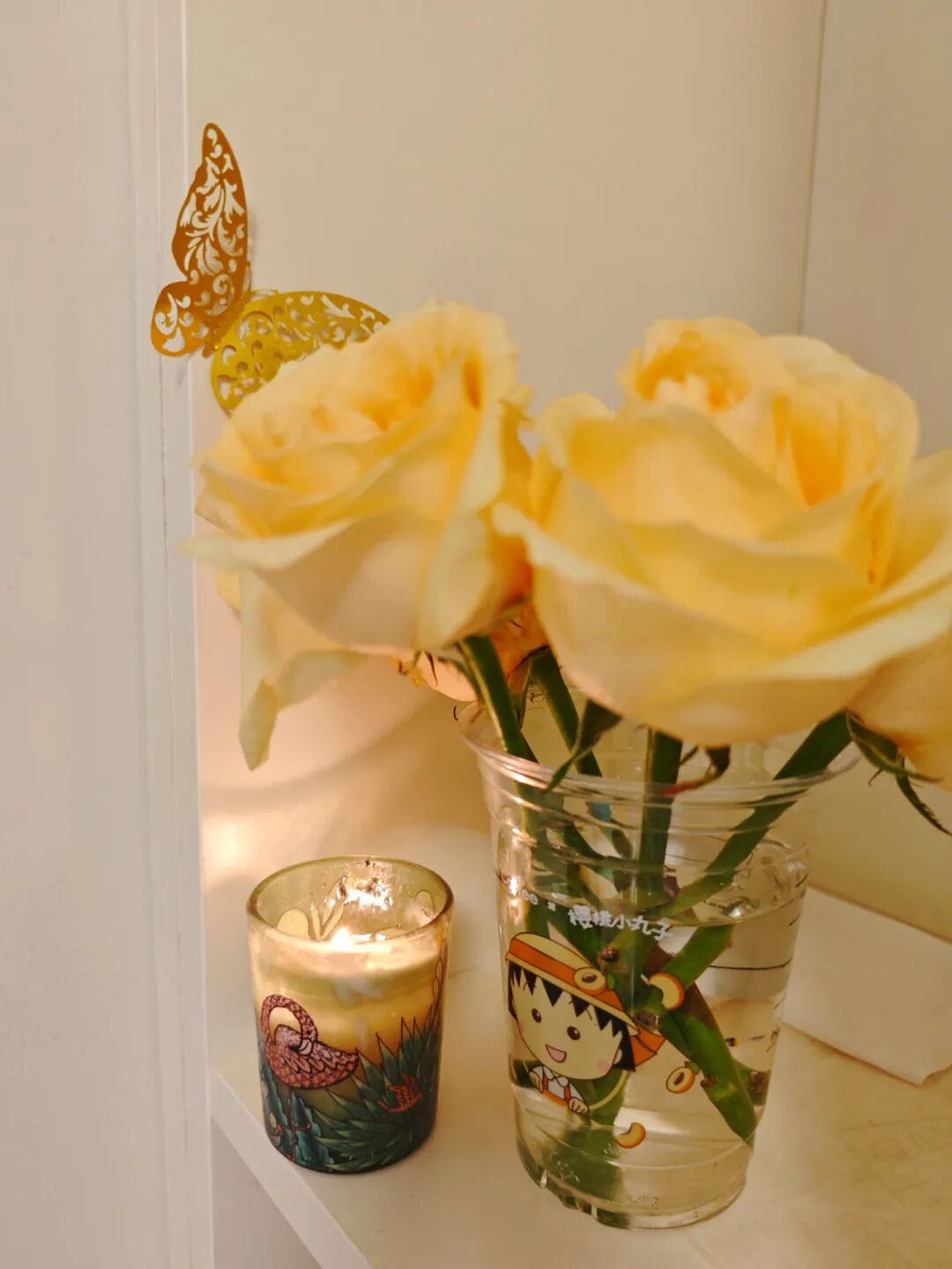 插花剩下的边角料,我也舍不得丢弃,插在洗干净的咖啡杯中,放置在床头壁柜上,点上香薰,安然进入梦乡。就像作家毛姆笔下所写:“一个人能观察落叶、鲜花,从细微处欣赏一切,生活就不能把她怎么样。”