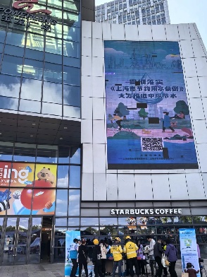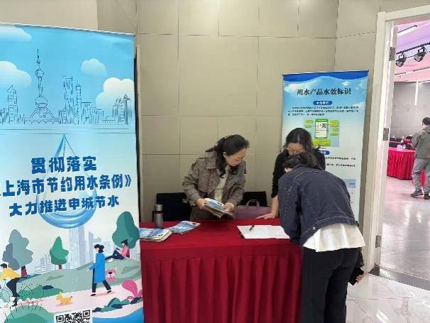 青浦区水务局志愿者在百联奥特莱斯广场入口,根据《条例》内容,结合“取、供、用、排”全过程和日常案例,向往来市民科普《条例》内容和水效标识;前往区内大用水户现场,结合节约用水主动服务,同步开展《条例》内容宣贯。