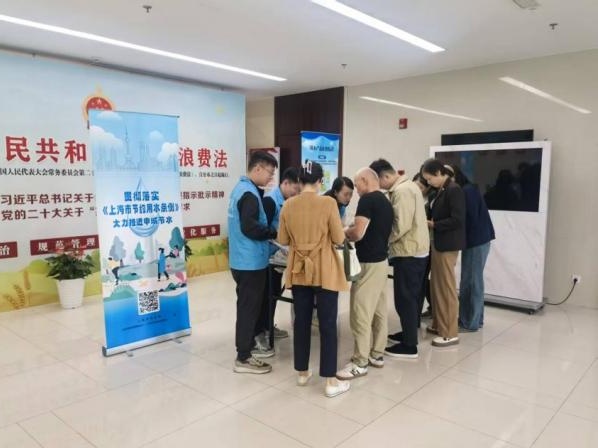 静安区水务局深入32个居民区和社区开展节水宣传,向居民发放宣传手册,重点分享“洗菜水浇花、洗衣水拖地”等贴近生活的节水窍门,引导居民从点滴做起;发挥党建引领作用,与重点商务楼宇紧密对接,通过商圈的电子屏循环播放节水宣传、清瓶行动内容,有效提升白领群体的节水意识。