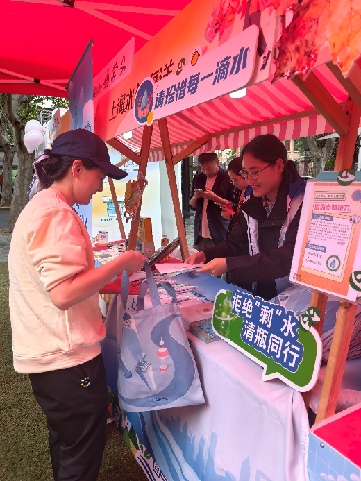 在兼具历史底蕴与时尚活力的愚园路,节水宣传融入“文明探访之旅”主题活动。工作人员通过展示节水主题文创产品,吸引众多市民与游客驻足参与。活动中,不仅有《条例》内容的通俗解读,更引导大家在探秘打卡的同时践行“清瓶行动”,让节水理念与文明旅游、街区文化深度融合。