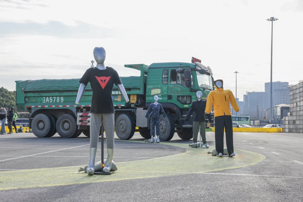 在危险情境实景模拟板块,五大高频风险场景逐一呈现,带来深刻警示。场景一:大型车辆转弯,内轮差区域的道具人偶被碾轧,配合现场讲解清晰勾勒出危险范围。场景二:小轿车“开门杀”模拟,骑行者遇突发开门倒地,直观展现不当开门方式的危害。场景三:电动自行车急刹,规范佩戴头盔者安然无恙,虚戴头盔的道具人偶则头部受损,鲜明对比凸显头盔正确佩戴的重要性。场景四:“鬼探头”模拟,突然冲出的道具人偶与机动车碰撞爆碎。还有场景五,敞篷车急刹实验,未系安全带的道具人偶前冲受伤,生动诠释了安全带的生命守护作用。
