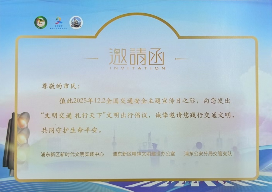活动中,浦东银龄文明交通实践员服务队成立。与会嘉宾与银龄服务队代表、快递外卖骑手代表、专业运输单位驾驶员代表共同发布“浦东新区文明交通邀请函”,向全区交通参与者发出倡议,呼吁社会各界共同参与文明交通建设,携手营造安全和谐的出行环境。