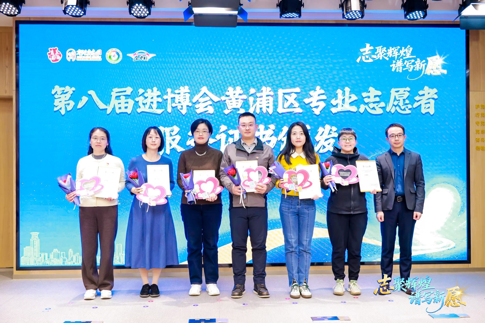 参与第八届中国国际进口博览会的专业志愿者代表获颁服务证书,获赠绒线花束和“志愿医卡通”。